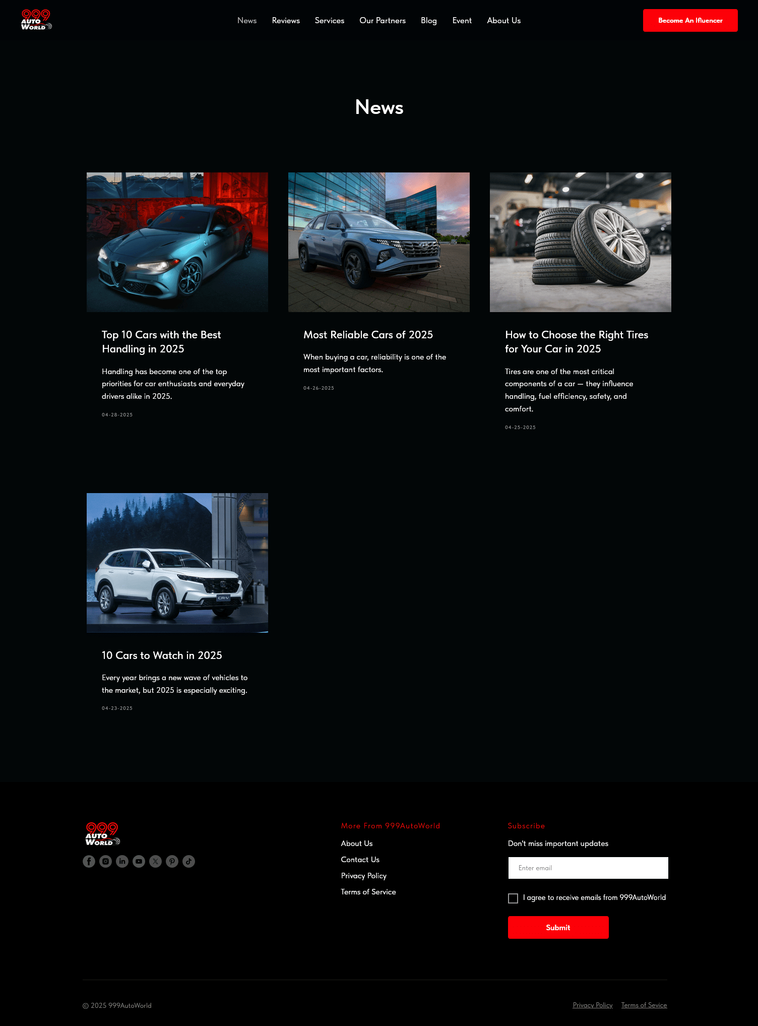 Project goal: Create a modern, easy-to-navigate website for 999 Auto World to showcase available vehicles, build trust with buyers, and streamline the car shopping experience